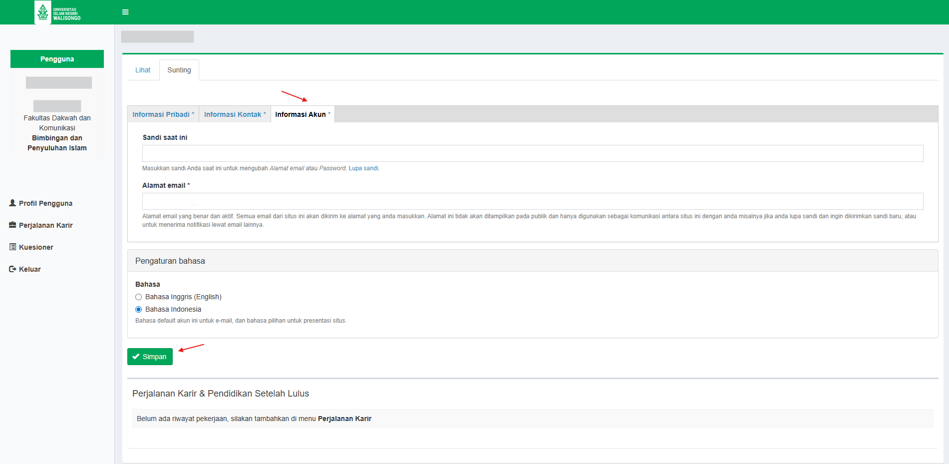 Jika sudah mengisi dan mengubah halaman, jangan lupa untuk klik "Simpan" agar perubahan data dapat tersimpan.